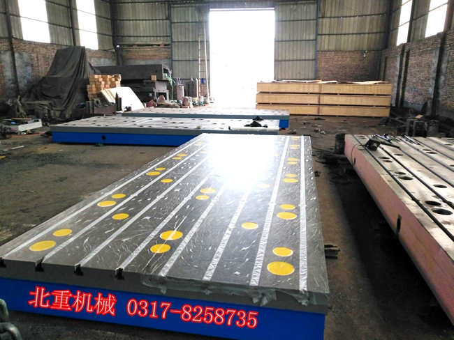 機床鑄鐵平臺自然時效:按國標標準應該是2-3年自然時效,由于此工序時間太長,企業受資金周轉影響已不可能等待那么長時間,多以激振器通過振動時效代替。雖然這種工藝的效果尚未明確,但在國際上已普遍使用。
