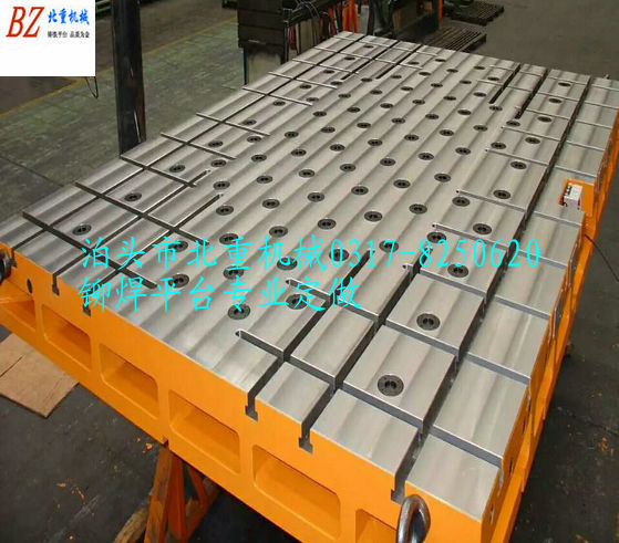 鑄鐵鉚焊平臺是鉚焊工作的基礎(chǔ)工作臺.北重T型槽鉚焊平臺為了滿足鉚焊工藝需求,鑄鐵工作臺面加工縱向或橫向T型槽,適當(dāng)位置加工圓孔,大型鉚焊平臺采用HT200-300灰鐵鑄造而成.鉚焊平板臺面經(jīng)過人工刮研處理,在鉚焊工作中其作用不容小視.使用鉚焊平臺運用到工作中,可提高工作效率增強產(chǎn)品質(zhì)量.
